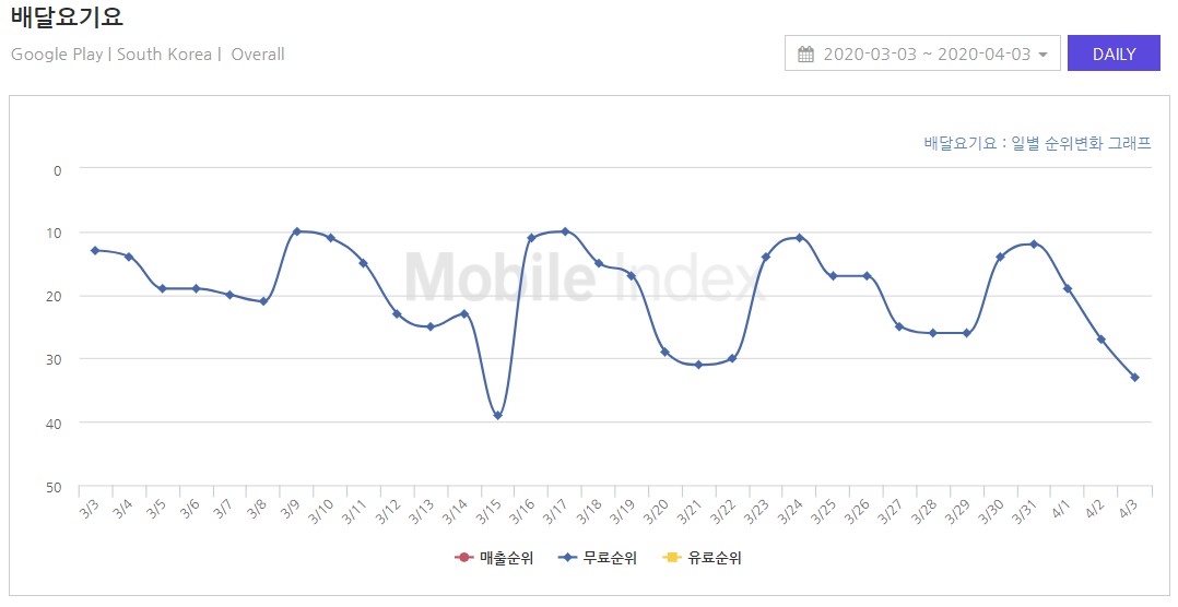 - 배달요기요: 13만명 평점 4.6점 (33위)