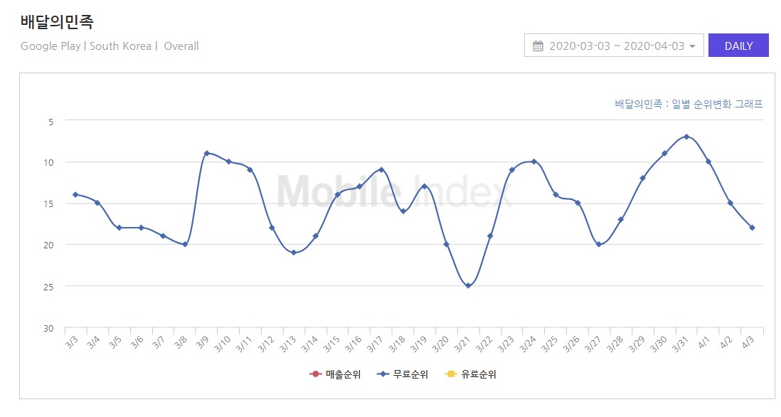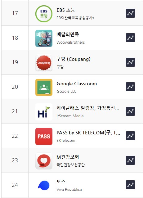 - 배달의 민족: 19만명 평점 4.3점 (18위)