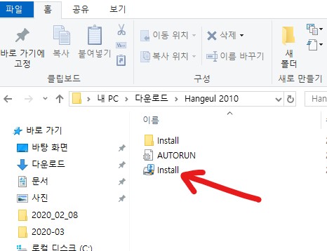 ◆한글 2010 무료 다운로드한 압축해제된 폴더로 진입하면 ‘Install’ 이 보일겁니다. 클릭해주세요.