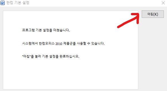 ◆드디어 한글 2010 설치 와 설정 까지 마쳤습니다!! ‘마침’을 클릭하세요.