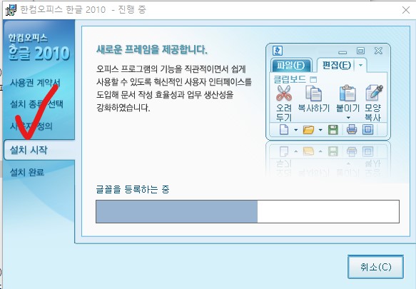 ◆한글 2010 설치가 시작되면서 아래 사진같이 진행률이 표시 됩니다. 한글 2010 설치는 대략 5분정도 시간이 소요 됩니다.
