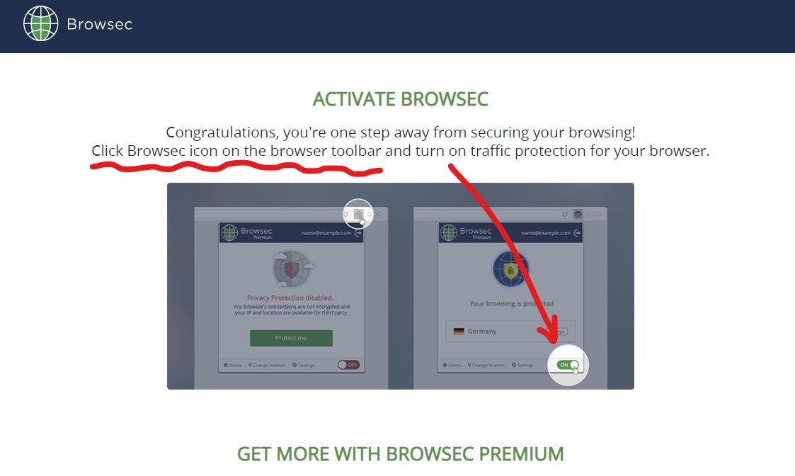 ◆구글 크롬에서는 설치를 환영한다는 설명과 컴퓨터 VPN우회 무료 프로그램 Browsec 창이 새로 뜨면서 Browsec 실행 방법을 간단히 설명하는 공식홈페이지도 뜨게 됩니다. Browsec 실행을 설명대로 해봅시다.