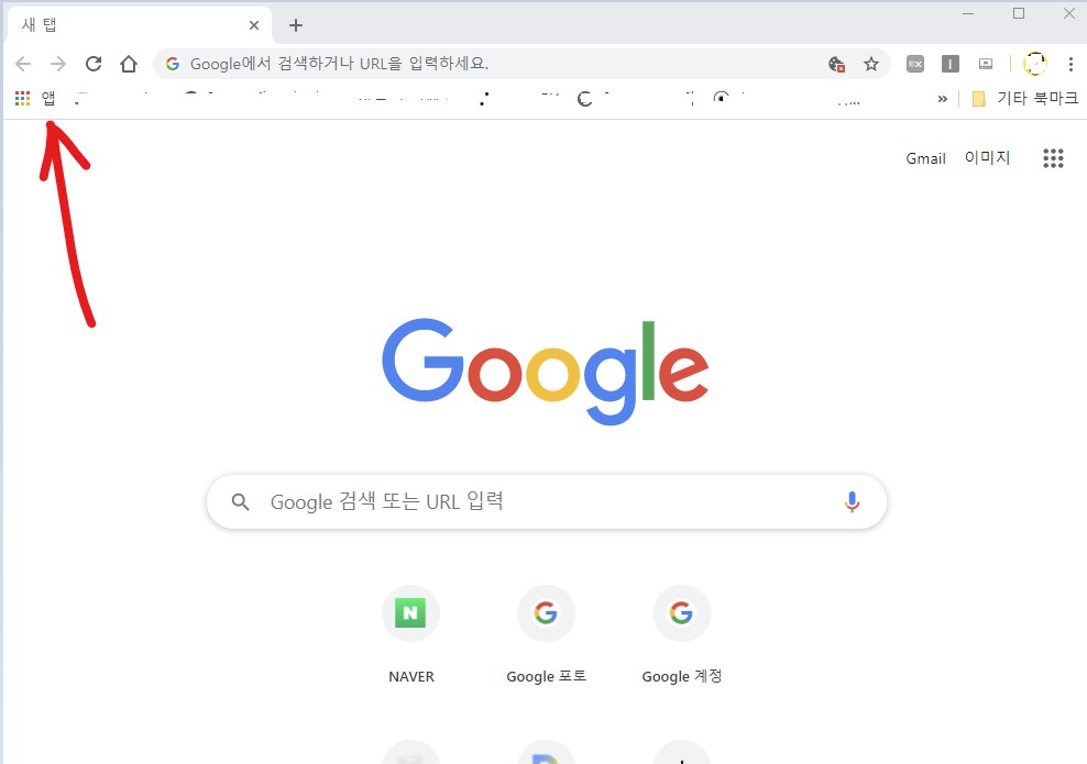 ◆구글 크롬을 설치하시고 나서 실행하시면 아래와 같이 화면이 나올겁니다. 빨간색 화살표를 클릭해볼게요.