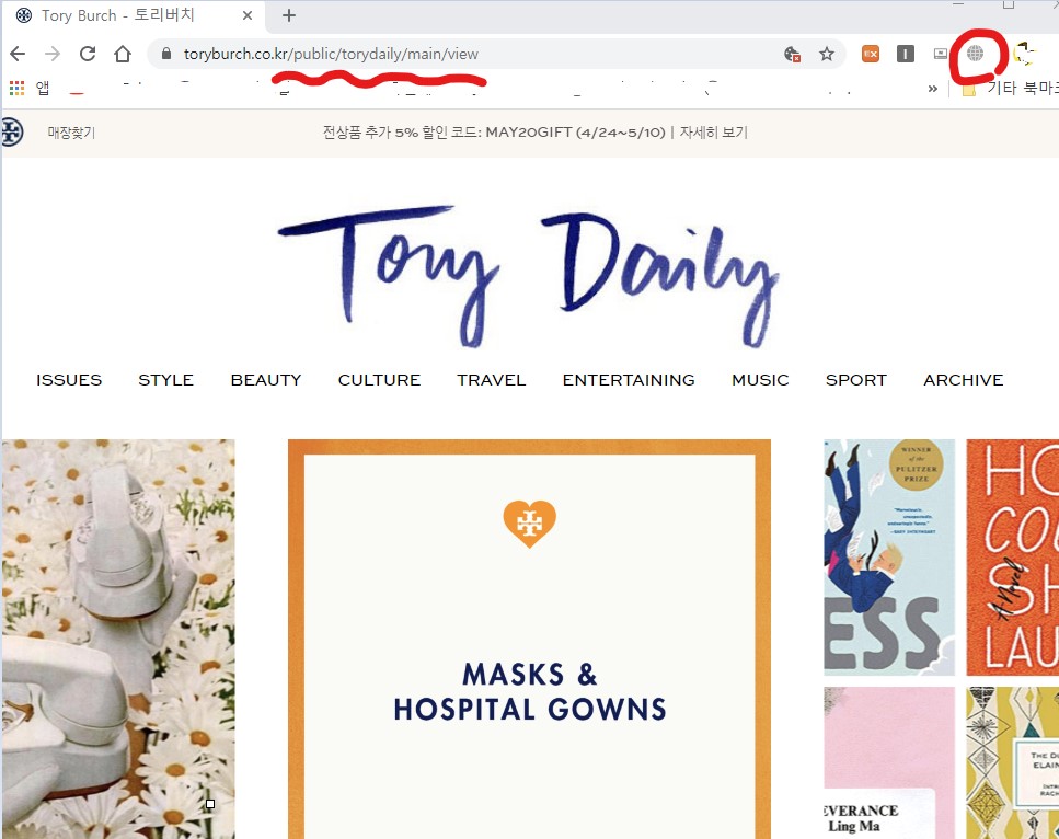 ◆자~ 그러면 컴퓨터 VPN우회 무료 프로그램 Browsec를 통해서 실제로 미국 사이트에 접속이 제대로 되는지 확인을 해봐야 겠지요. TORY BURCH 제품이 국내 IP로는 웹사이트 브라우징이 어렵다던데, 실제로 TORY BURCH 제품을 볼수 있는 웹사이트로는 접속이 어렵네요.