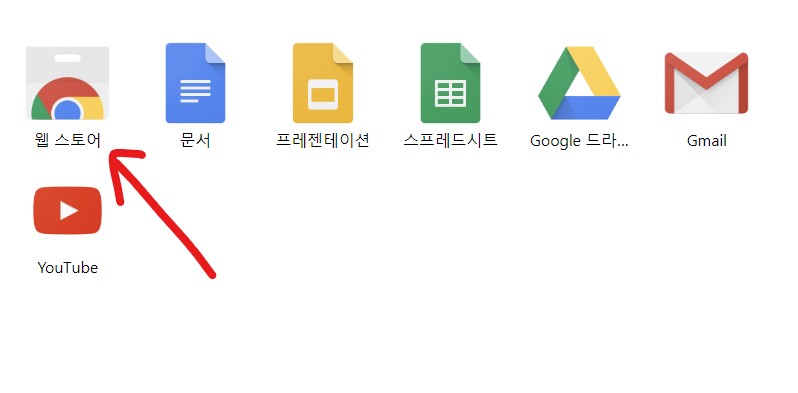 ◆구글 크롬에서 사용가능한 앱들이 여러가지 뜰겁니다. 그중에서 우리는 컴퓨터 VPN우회 무료 프로그램 Browsec 를 설치하기 위해서 ‘구글 크롬 웹 스토어’ 빨간색 화살표를 클릭 하겠습니다.